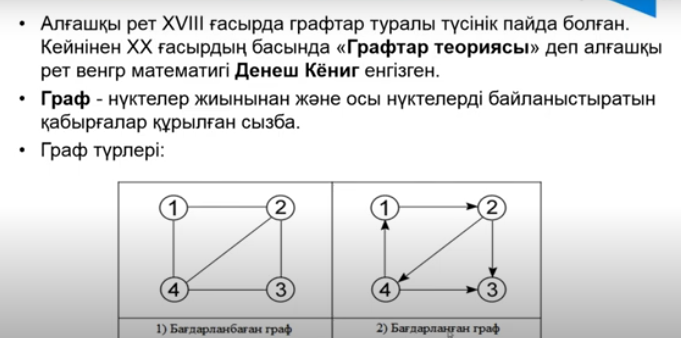 Сабақтың тақырыбы: § 3.14 ГРАФТАҒЫ АЛГОРИТМ ТҮРЛЕРІ