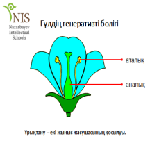 2-тапсырма.«Диалог»әдісі «Гүлді өсімдіктердің ұрықтануы» тақырыбындағы видеороликті көріп, талқылаңыздар. Дескриптор: -гүлді өсімдіктердің қосарлы ұрықтануын талдайды. Кері байланыс: Бас бармақпен бағалау. 3-тапсырма.«Графикалық органаизер» әдісі. «Гүлді өсімдіктердіңұрықтануы» схемасындағы суреттерді ретімен орналастырып, кестеге толтырып, қысқаша сипаттаңыздар.