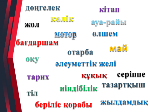 Шарты: 1 минут ішінде 20 сөзді есте сақтау қажет, сол сөздерді CLILL бағдарламасына сәйкес орыс және ағылшын тілдеріне аудару қажет.