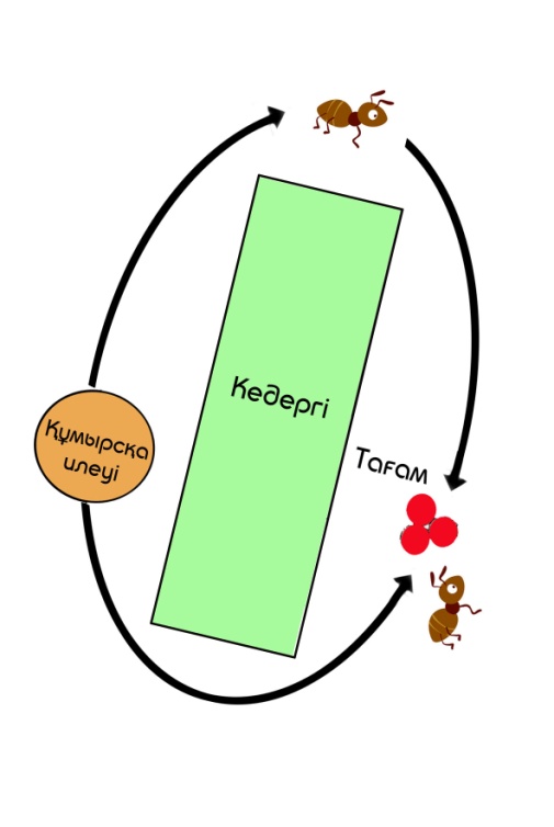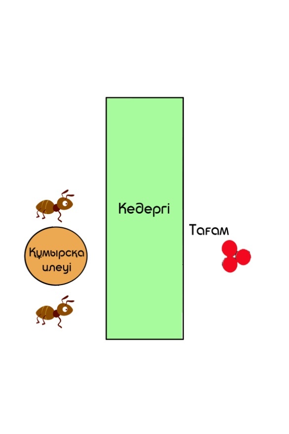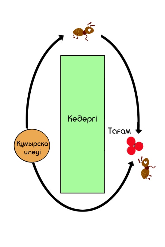 Мысал қарастырайық. Ұядан шыққан екі құмырсқа кедергі артындағы тағамға жетуі керек. Қозғалыс кезінде әр құмырсқа маркер ретінде пайдаланып, қандай да бір фермент бөледі. (І қосымша).