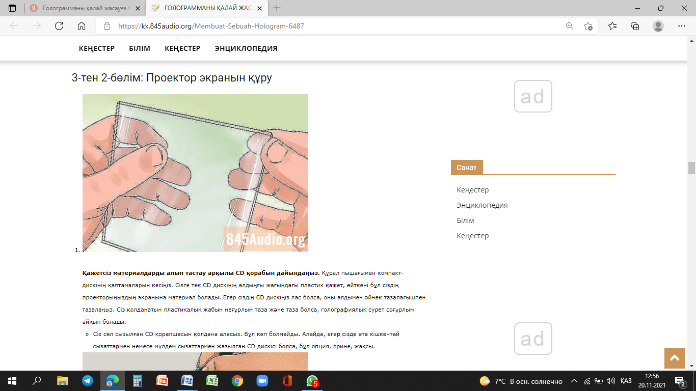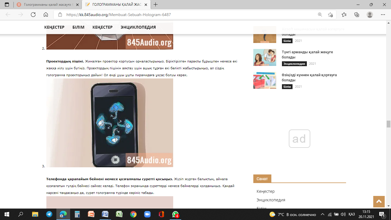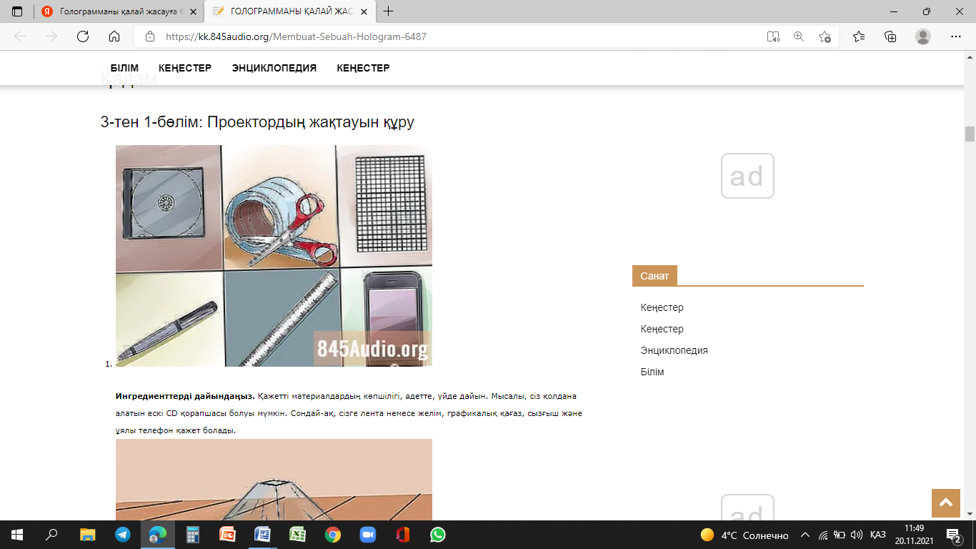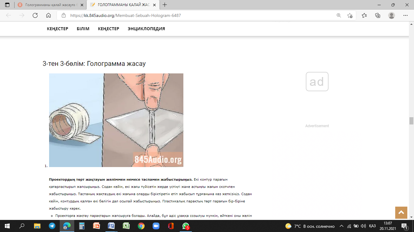 Ғылыми жоба, 3D голограмма проекторын құрастыру.