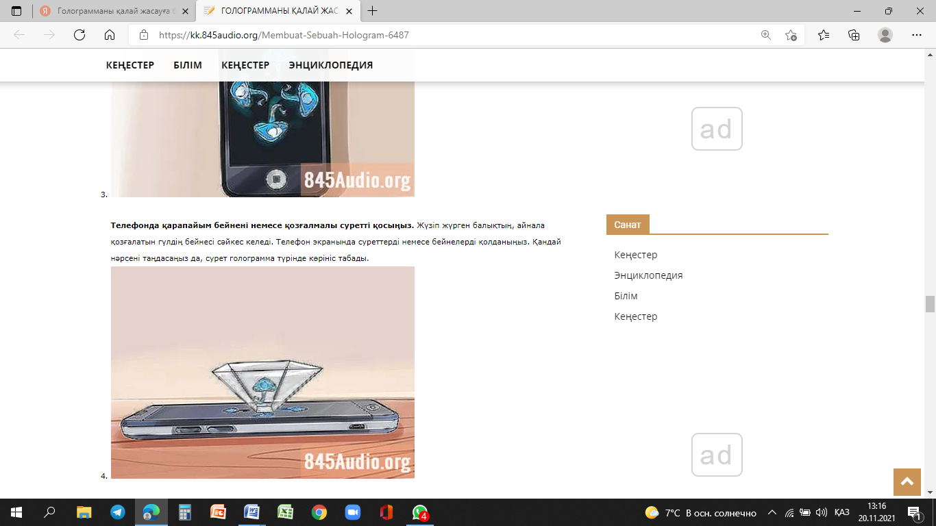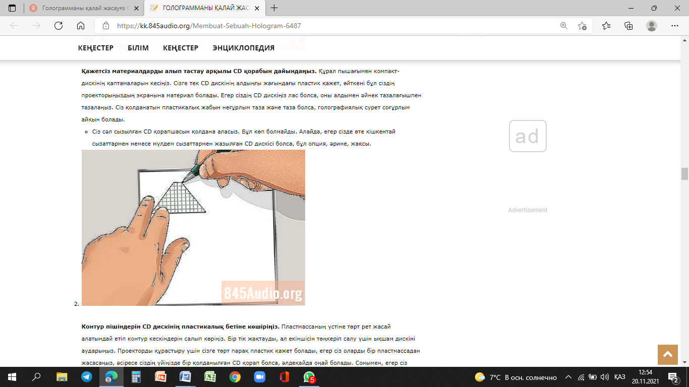 Голография туралы ақпарат жинақтау;