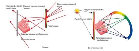 Фотопластинкаға «дыбыс» толқынымен бір уақытта шашыраңқы объектімен сол жарық көзінен «тірек» толқынын бағыттайды. Интерференция кезінде пайда болатын бұл толқындардың көрінісі объект түрінде ақпаратпен қамтамасыз ететін жарық сезетін бетінде белгіленеді.