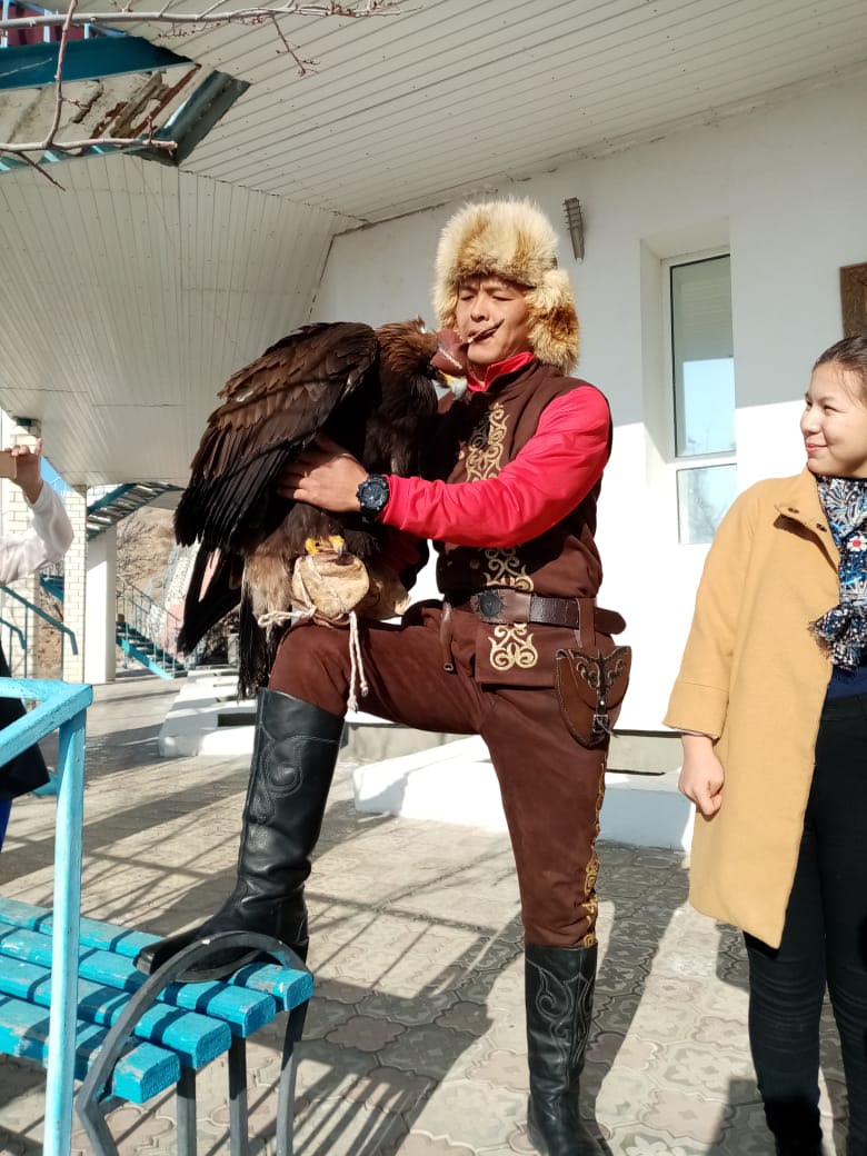 « Жарысқа бүркіт пен ителгімді апардым. Ителгі – кіші құс. Алатын аңының ең ірісі қоян, үйрек секілді аңдар. Ителгі жыланның түрін айыра алатын, ауызында асыл тасы бар жыланды төбеде ұшып жүріп, ысқырғанда жыланды су түбінде көріп, айыра алатын қасиетке ие құс. Ал бүркіт бабына келсе, қасқырға дейін алады. Баптауына келсек, ең қиыны- бүркітті баптау. Оны аңға салу үшін 40-45 күн қайырады. Төсінде, табанында, қанатының астында, құйрығындағы майларын бөліп алмай, жәймен, баппен азайтады. Ең бірінші орында бүркіттің іш құрылысының тазалығы. Егер қыранның асқазанында май болса, құс салған аңынан айнып бармай қалады. Соның барлығын қадағалп отыру қажет. Құсты баптағанда жем, ақжем, сары бөртпе беріп баптаймыз.» - дейді құсбегі Айшуақ Тайманов. Осыдан қарап-ақ, құсбегілік өнері екінің бірінің қолынан келетін өнер емес екендігін білуге болады.