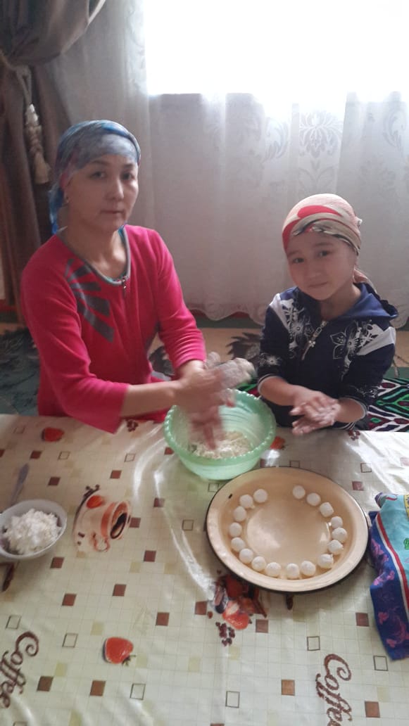 Мен ауылға атам мен әжемнің үйіне бардым. Құрт тағамынын қалай жасалатынын білу үшін ең бірінші апама көмектесіп, сиыр саууды үйрендім.