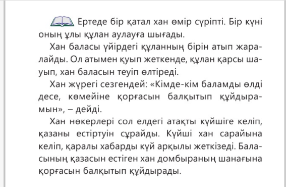 Жұптық жұмыс. Мәтінді оқып, ауызша талдау. Қандай күйде орындалады? Ертегі ме? Аңыз ба? Алдындағы кестені қарай отырып бір-біріне жауап береді.