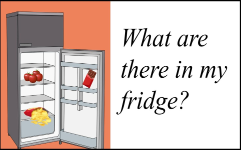 Task 3. ? Pair Work:What are there in my fridge- Students will work in pairs. For each pair assign fridge with food. Students create sentences with a, an, some and There is/are - Share with class