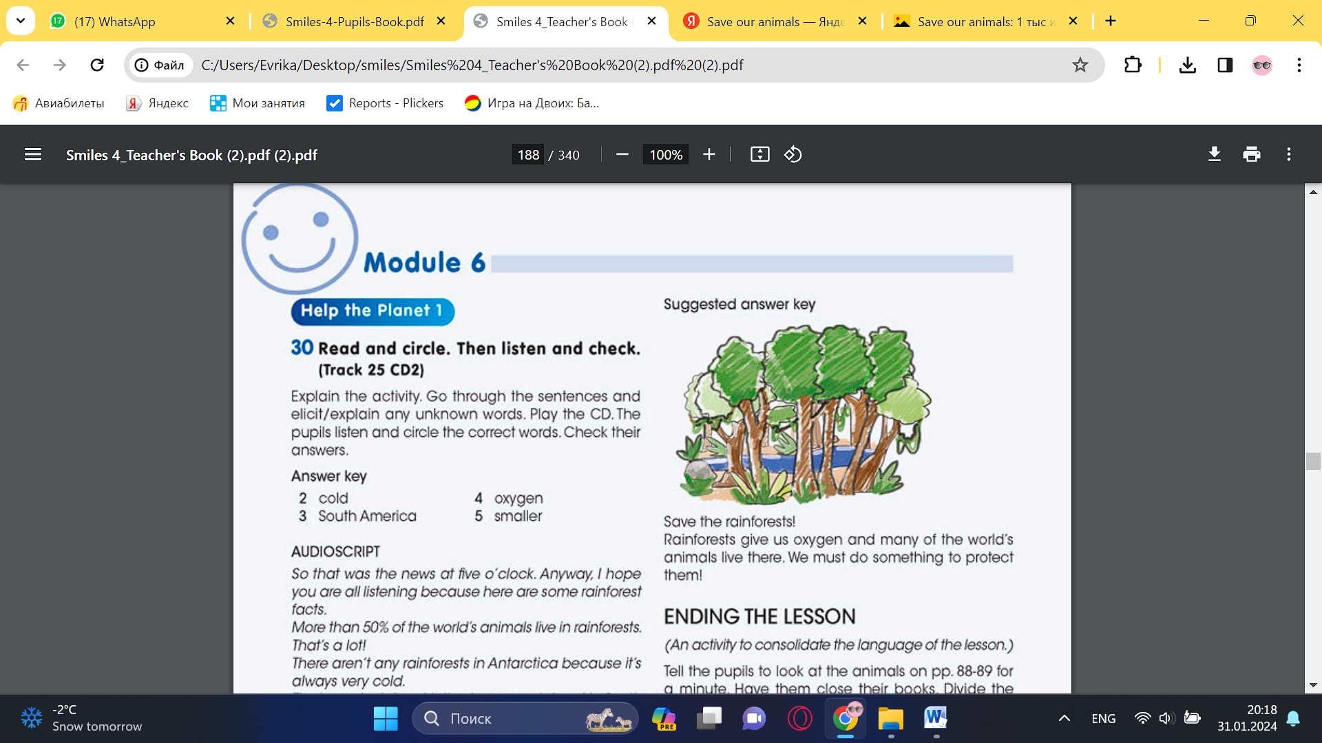 Pupils read and circle. Then listen and check ANSWERS 2 cold 3 South America 4 gen 5 smaller Pupils design your own Save the rainforests! Poster. Present it to the class. ANSWERS