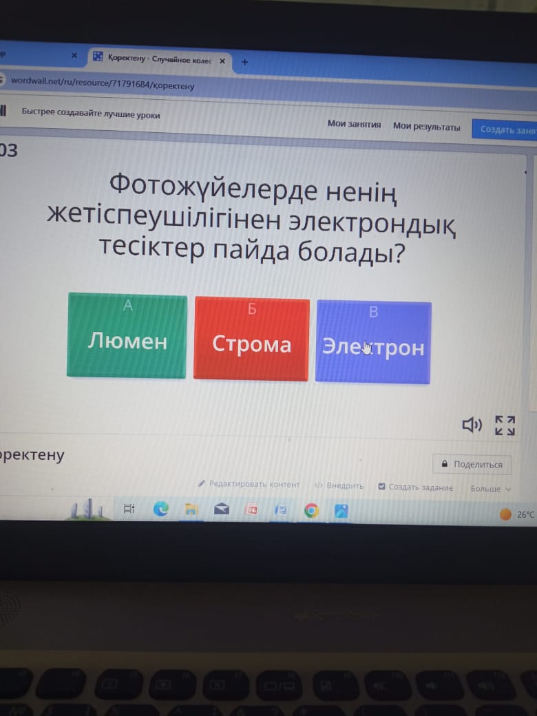 «Wordwall.net» әдісі бойынша интернет желісі бойынша тест тапсыру.
