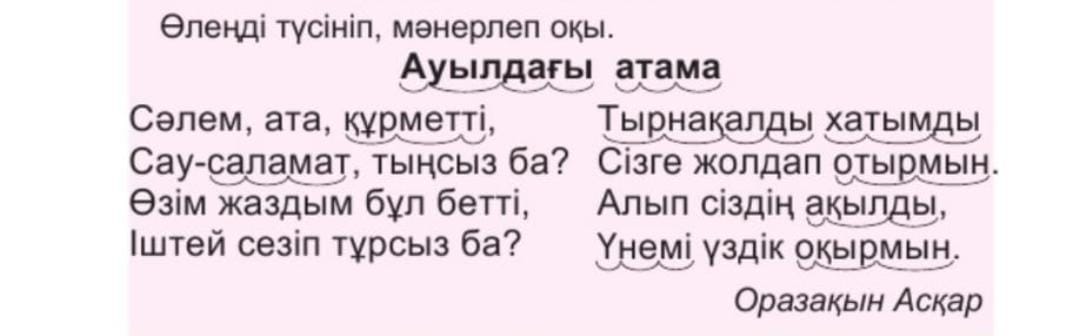 Үй тапсырмасы Ауылдағы атама өлеңіні жаттау