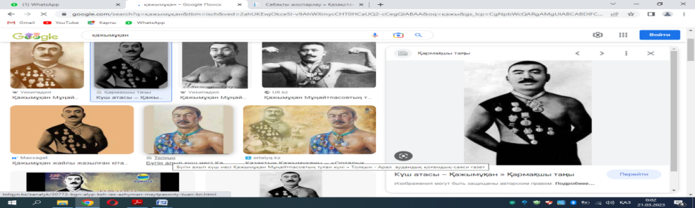 Мағынаны тану Зерттеу мен талдау https://youtu.be/PUNZQkbbWJ0?feature=shared Зерттеу сұрағы:Қазақ өнерінің жаңа белеске көтерілуі неден байқалды? Топтық жұмыс «Мәтін пирамидасы»-мәтінмен жұмыс Оқушыларға Әміре Қашаубаев пен Қажымұқан Мұңайтпасұлы туралы мәтін таратады,тапсырма мәнін түсіндіреді Мәтіннің мазмұнына сүйене отырып, маңыздылығын анықтайды. 1-топ:Музыкалық өнер 2-топ:Театр өнері 3-топ:Сурет өнері Жұптық жұмыс «Милион кімге бұйырады?» Жұптарға тақырыптық тест тапсырмалары ұсынылады 1. Өз өмірін қазақтың музыкалық шығармаларын жинау мен оны бір жүйеге келтіруге арнаған белгілі ғалым-этнограф-А. Затаевич 2. 1925 жылы Парижде өнер көрсетіп, француз баспасөзінің ыстық ықыласына бөленген әнші- Ә. Қашаубаев 3. 1936 жылы қазақ өнері мен әдебиетінің он күндігі өткен қала-Мәскеу 4. 1926 ж. ашылған Қазақ театрында қойылған Ғ. Мүсіреповтің пьесасы- «Қозы Көрпеш-Баян сұлу» 5. ХХ ғ. 20-30-жылдары түсірілген, Қазақстан өміріне арналған фильмдер арасынан артығын табыңыз-«Жаужүрек мыңбала» 6. Қажымұқан Мұңайтпасұлы 1909 жылы өткен жарыста латыштың атақты балуаны Вейланд Шульцті жеңіп, бірінші рет әлем чемпионы атанады-Германияның Кельн қаласында 7. 1914 жылы Парижде өткен әлем чемпионатында әлем чемпионы атағын жеңіп алды-Қ.Мұңайтпасұлы 8. Өзінің спорттық жолында Қажымұқан Мұңайтпасұлы жеңіп алған медальдар саны-48 9. Қажымұқанға Қазақ АКСР ОАК Президиумы «Қазақ даласының батыры» атағын берді-1927 ж Жеке жұмыс «Таңдау тақтасы» әдісі