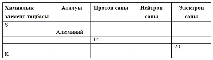 Кестедегі элементтердің элементар бөлшектерін дұрыс жазып, атаңыз және кестені толтырыңыз