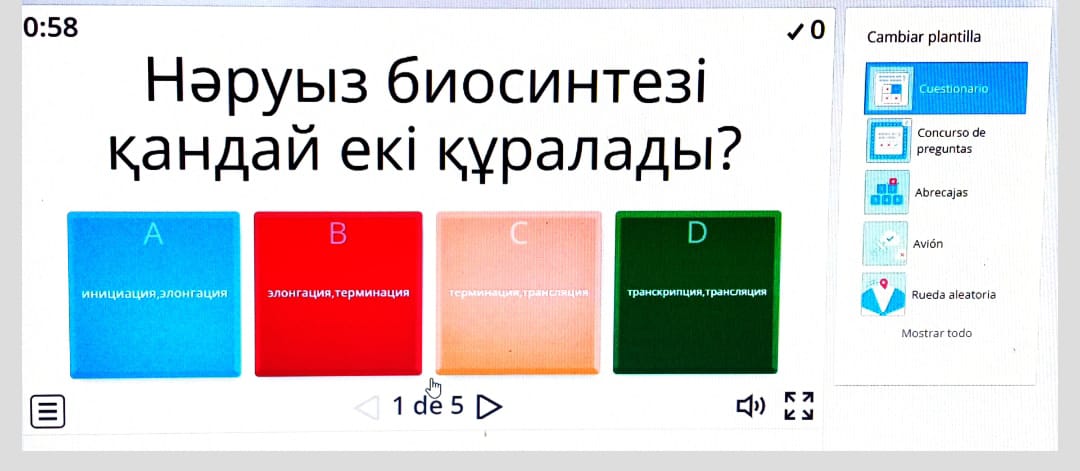 «Wordwall.net» тест әдісі арқылы тест тапсырмасына жауап беру жұмысы.