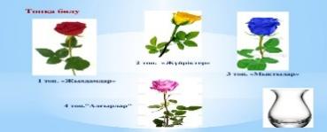 1.Оқушылармен амандасу. 2. Шаттық шеңбер құрып, бір-біріне тілектерін айтады. 3. Топқа бөлу: Гүлдің түстеріне сәйкес 3 топқа бөлінеді