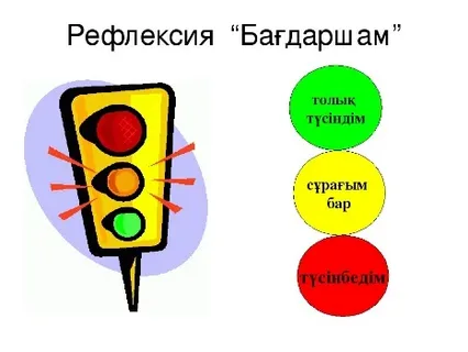 жаттығуларды талқылау, сұрақтарға жауап беріп, «бағдаршам» әдісі бойынша қорытындылаңыз. |