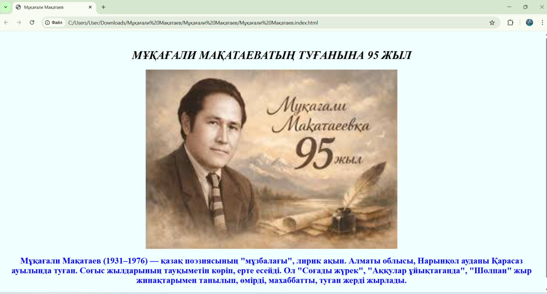 3-тапсырма. Жеке (Жұптық) жұмыс. Практикалық жұмыс. Оқушыларға тартпа материалдар беріледі, компьютер арқылы Web парақшасын жасату.