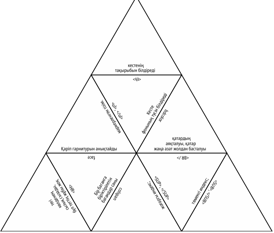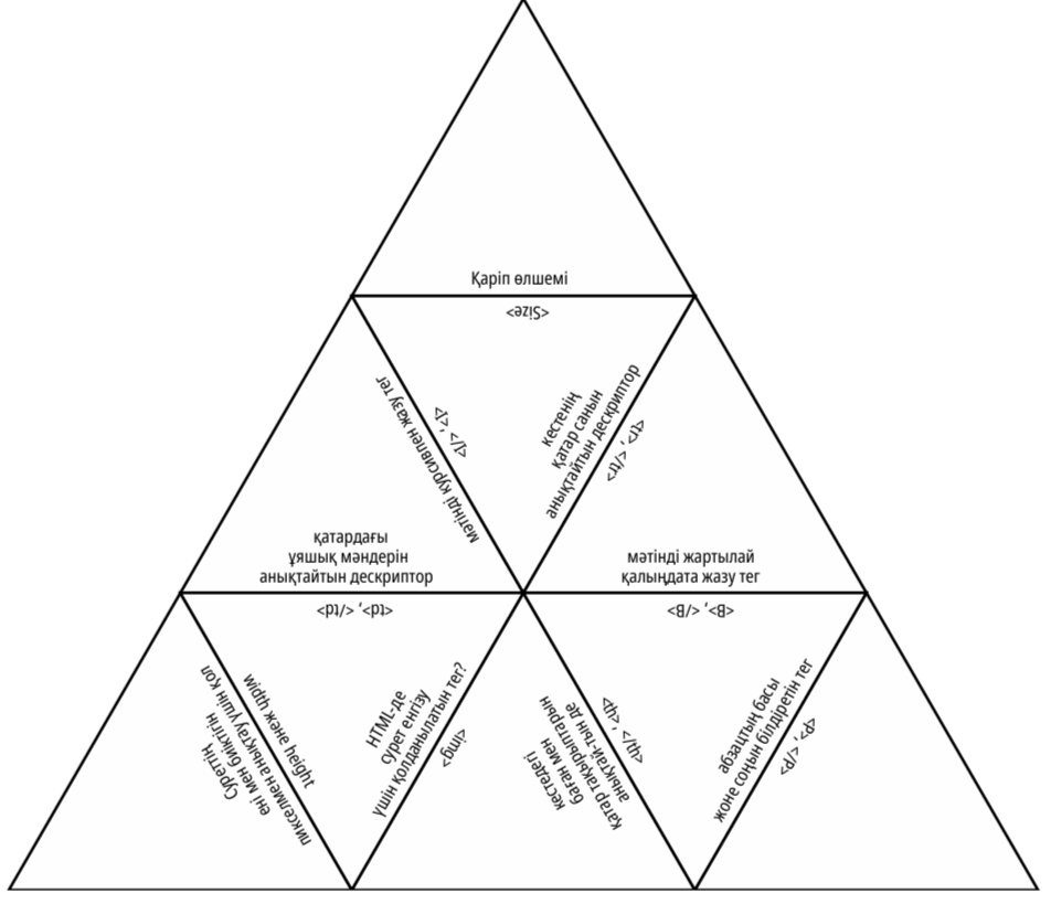 2-тапсырма: Топтық жұмыс: «Тарси» әдісі арқылы HTML-де берілген тегтерді сәйкесінде туралап орналастырады.