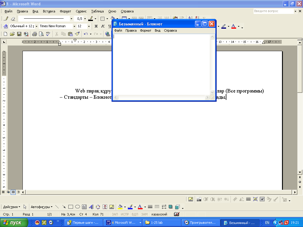 Web парақ құру үшін ең алдымен Іске қос (Пуск) – Программалар (Все программы) – Стандартные – Блокнотты іске қосу қажет. Сонда блокнот терезесі ашылады.