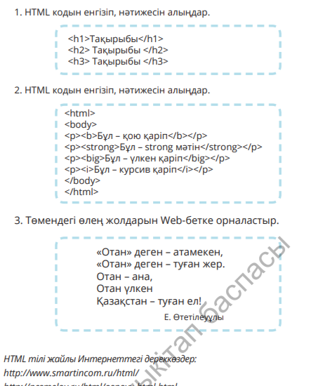 10.4.2.1 web (веб)-парақшаларды әзірлеуде HTML (аш ти эм эл)-тегтерін қолдану |