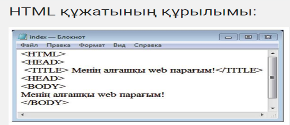 HTML тілі және тегтері туралы түсінік беру |
