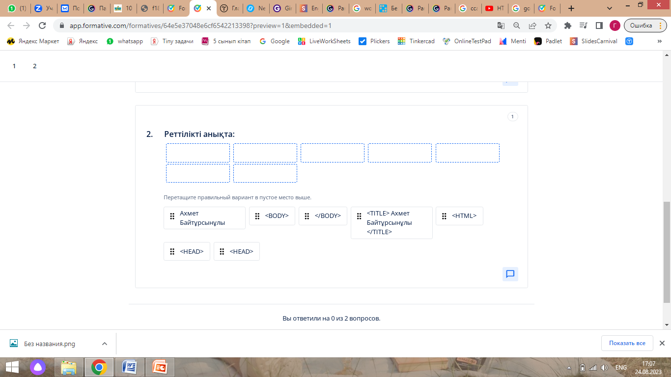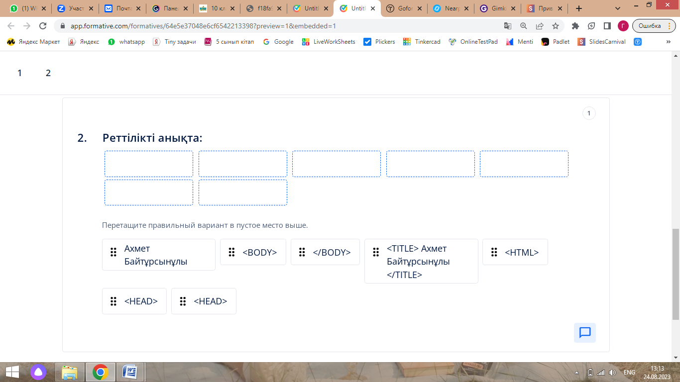 Тапсырма GoFormative бағдарламасында тегтерді атқаратын қызметтерімен сәйкестендіреді.