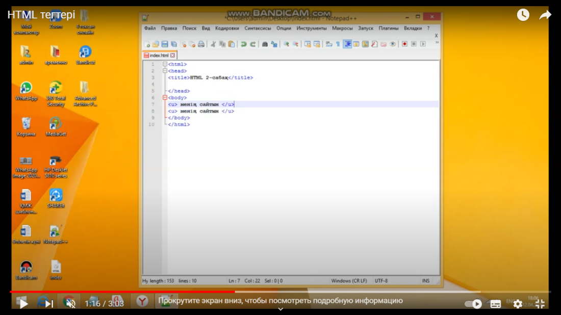 «Кинометафора» әдісі. Жаңа материалды меңгерту мақсатында, оқушылар youtube каналынан HTML-дің тегтері туралы бейнематериалдарды көреді, тегтердің атқаратын қызметімен танысады.