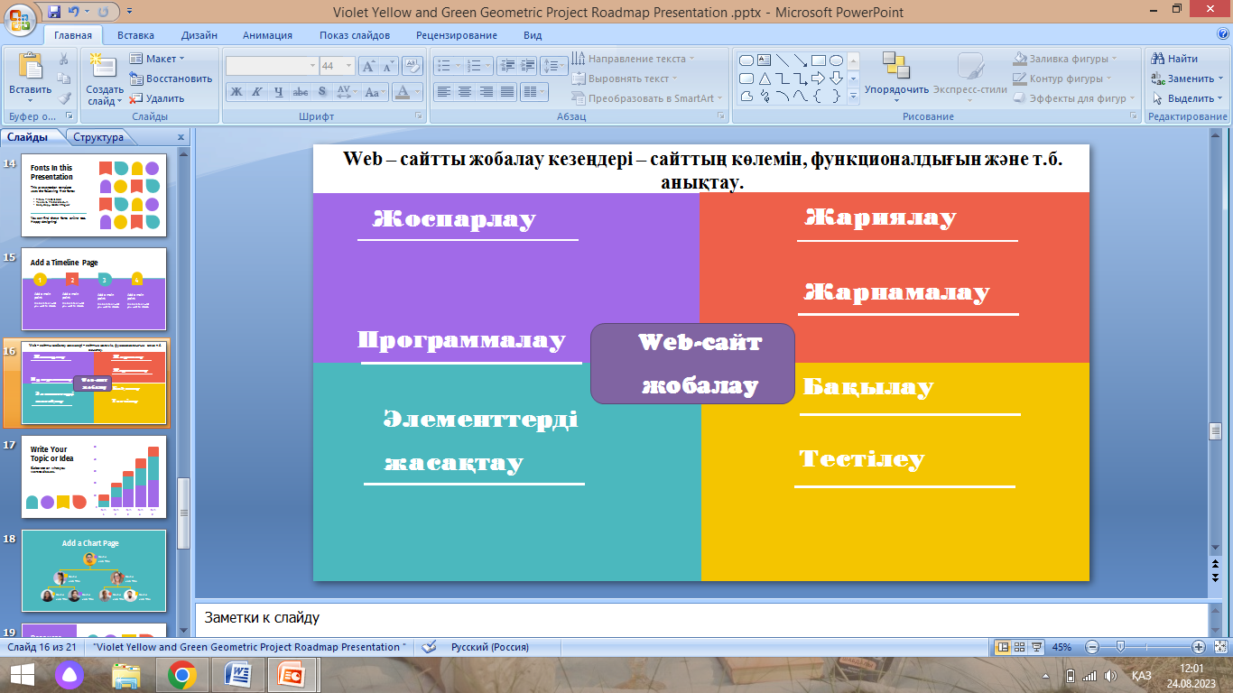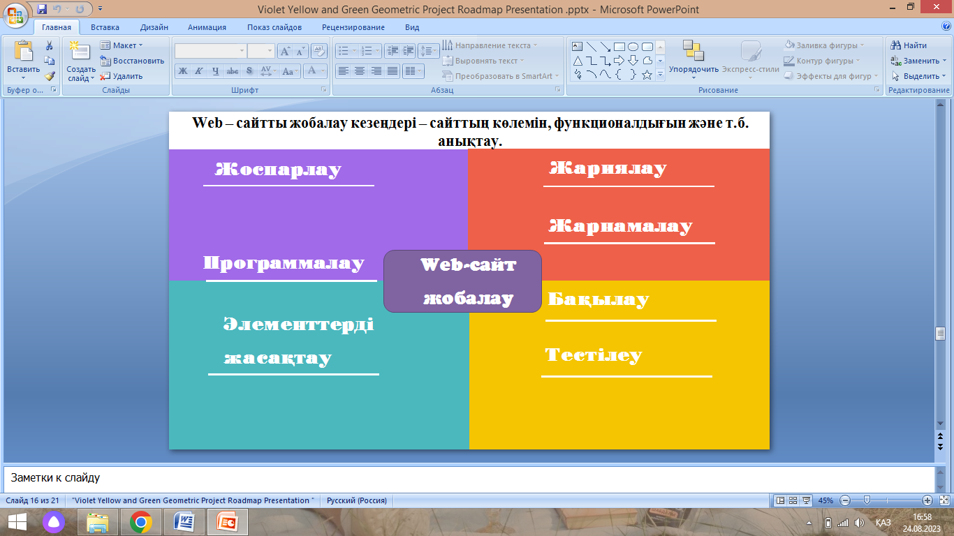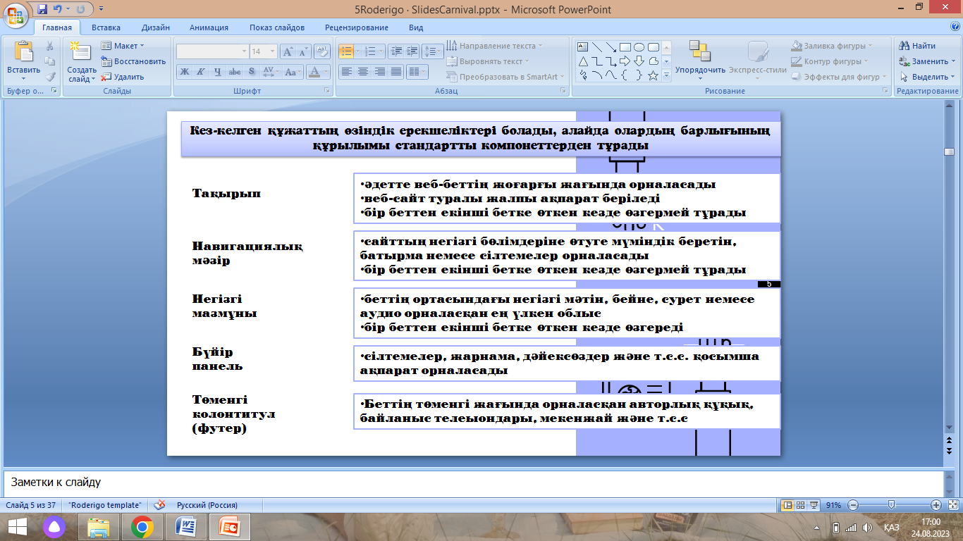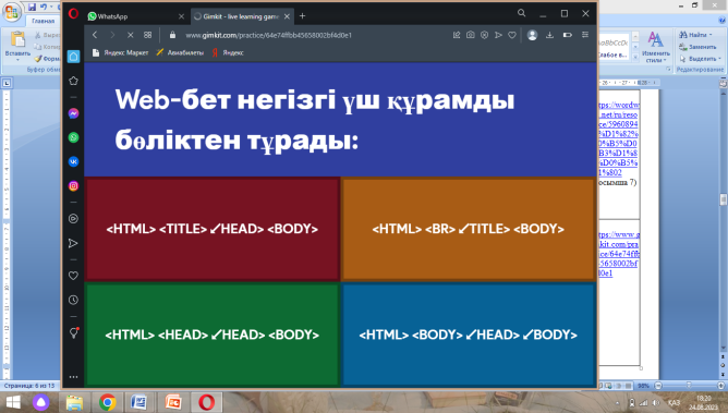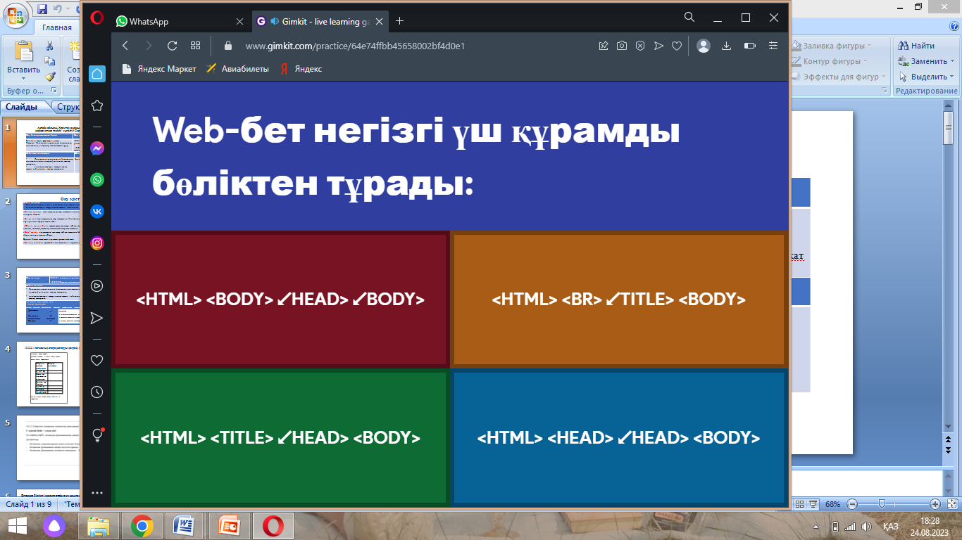 Web – сайттың алғашқы бетін әзірлеу үшін HTML-дің негізгі «body», «title», «head», «bgcolor» тегтерін қолданады. |