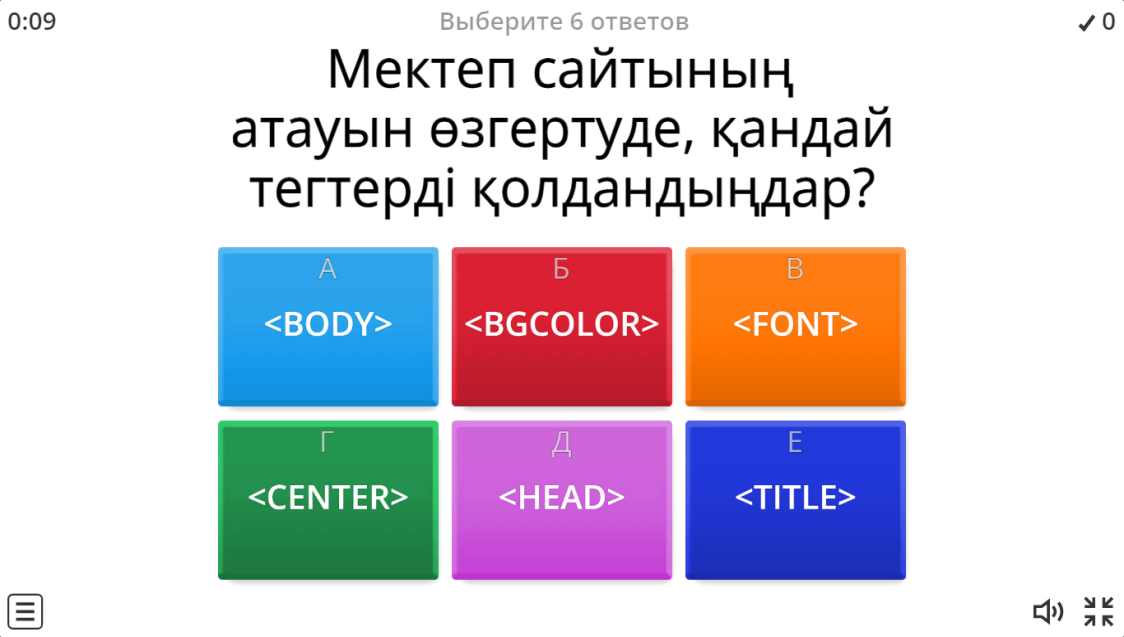 Дескриптор: -<body> тегін анықтайды -<bgcolor> тегін анықтайды -<font> тегін анықтайды -<center> тегін анықтайды -<title> тегін анықтайды -<head> тегін анықтайды. «Әуе шары» әдісі арқылы бағалау