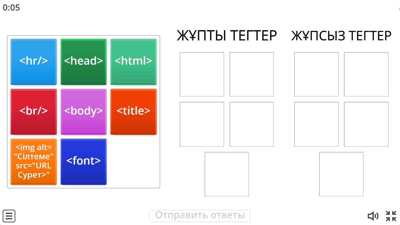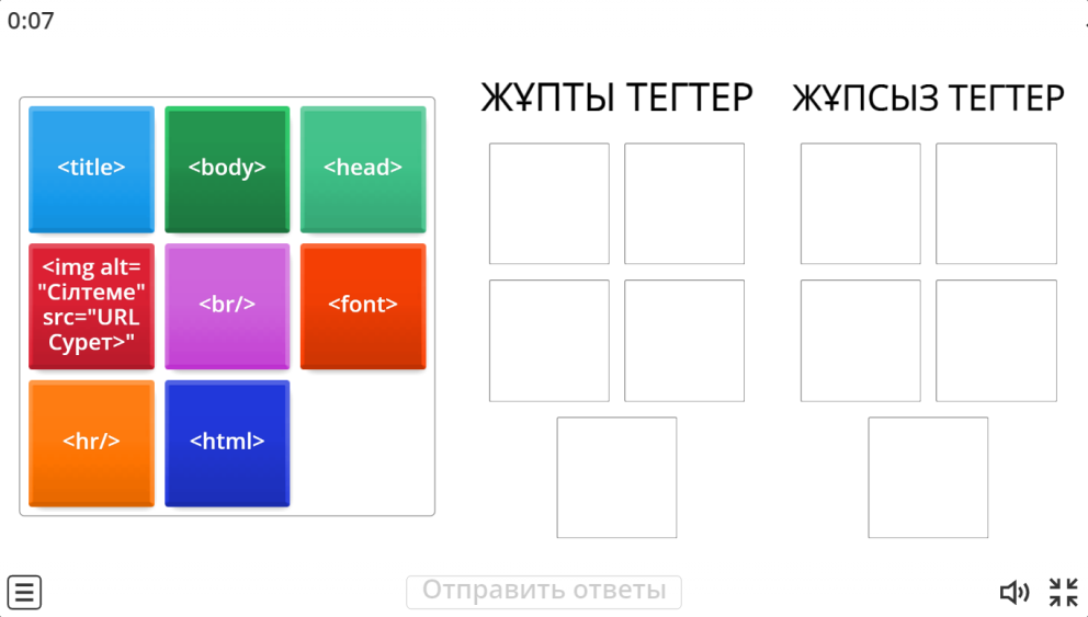 Ерекше білімді қажет ететін оқушы үшін. Wordwall платформасында берілген тегтердің жұпты және жұпсыз екенін анықтайды.