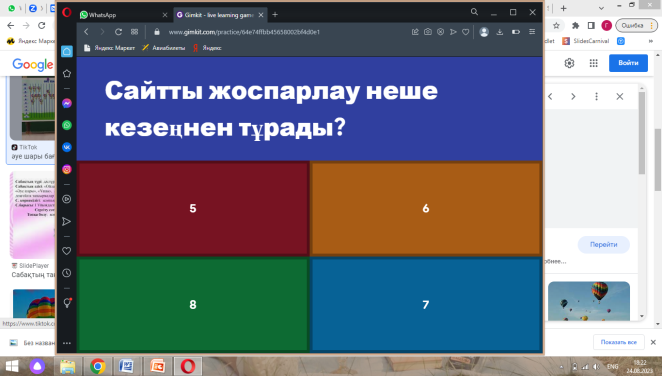 Сабақты қорытындылау мақсатында оқушылар gimkit платформасында тест тапсырмасын орындайды.