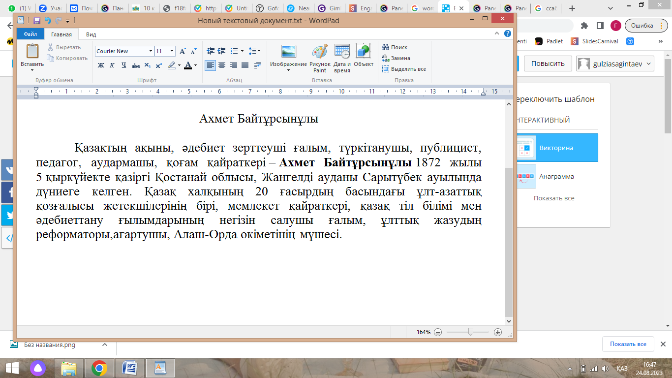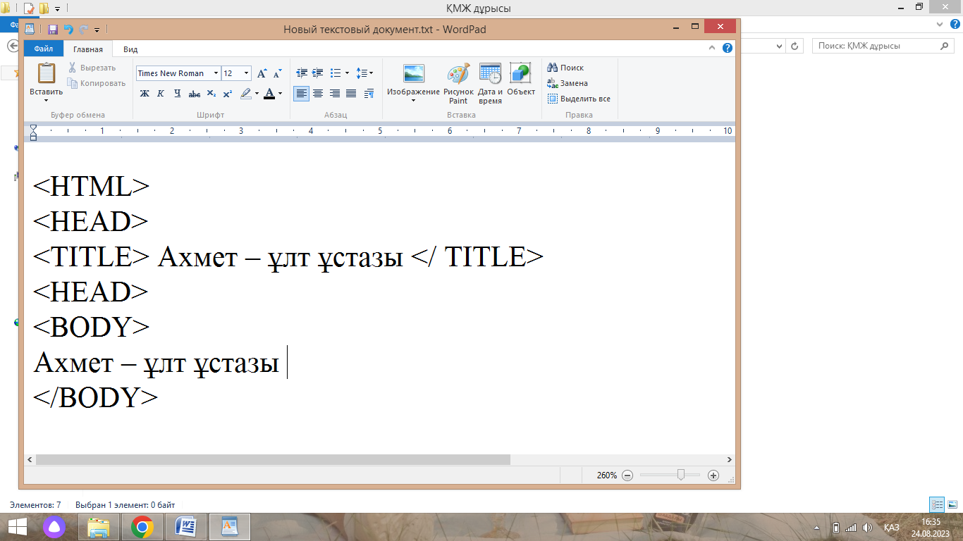 Компьютерде Ахмет.html деп сақталған құжатты ашып, берілген мәтінді өңдеп жазады