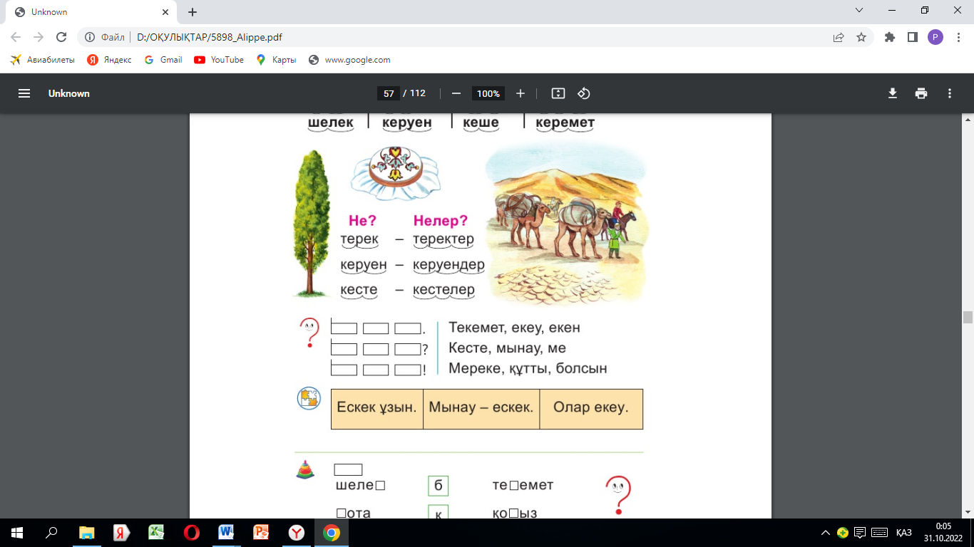 Оқулық 57 -бет Әріптер жазылған қақпақтар. |