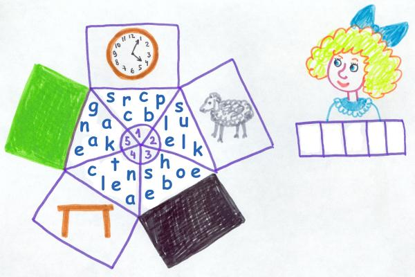 Аналогичные задания в более простом варианте составить очень просто и быстро. Выбираем одно исходное слово, которое ученики будут угадывать в результате выполнения задания, а также несколько других слов, в количестве, равном количеству букв первого слова. Для начальной школы желательно выбирать слова с опорой в виде картинок. Затем перемешиваем буквы каждого слова, добавляем к ним по одной букве исходного слова, и выписываем перемешанные буквы под соответствующими картинками. Ученики расставляют буквы в правильном порядке, определяют лишние и составляют из них искомое слово. Пример простого задания: