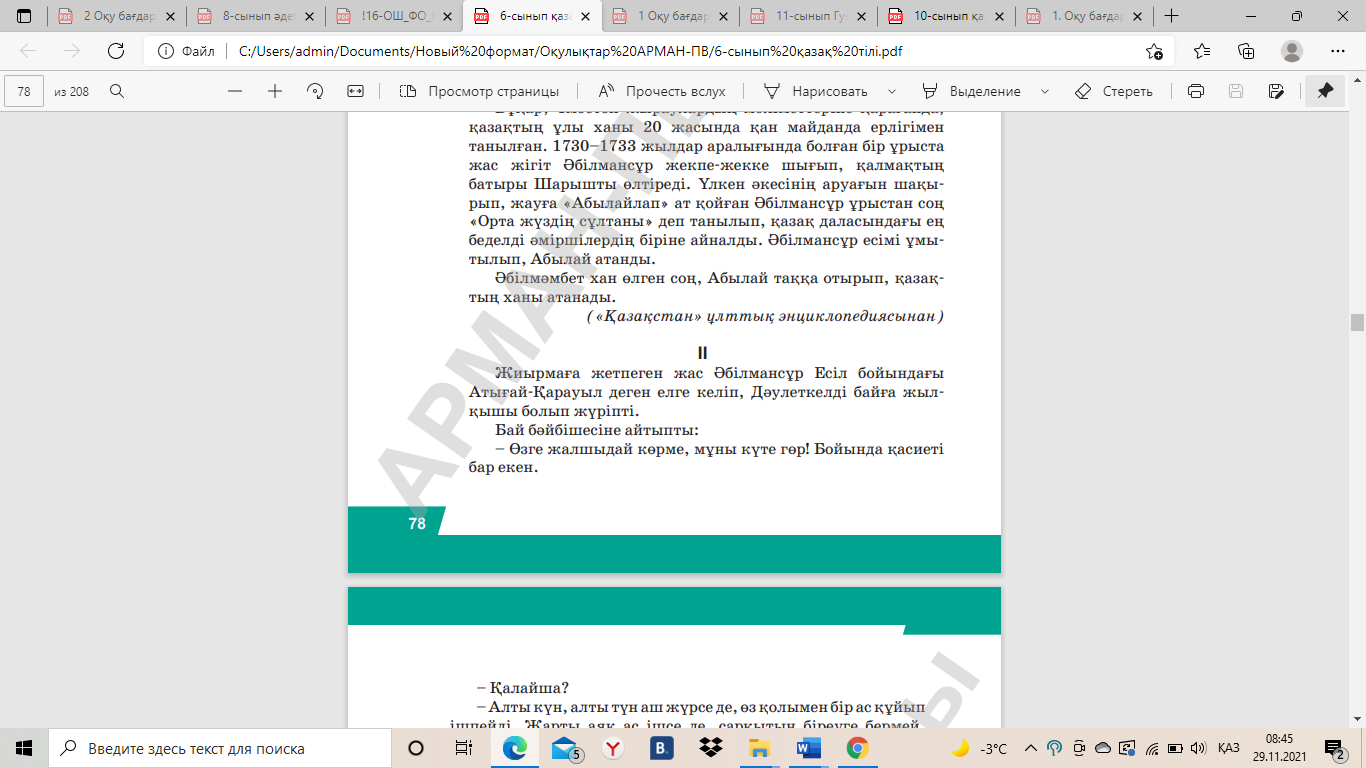 6-сынып «Қазақ тілі» оқулығы («Қазақстан» ұлттық энциклопедиясынан)