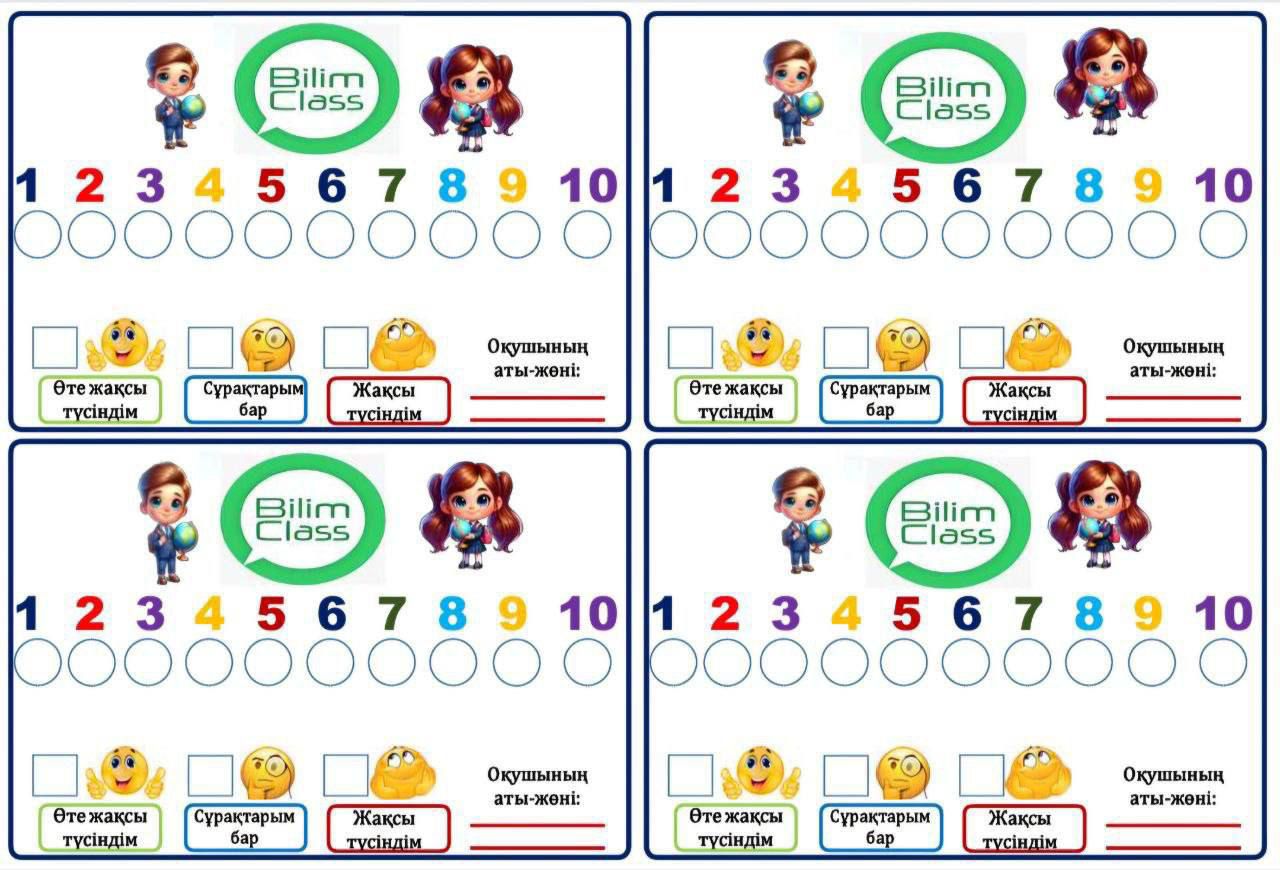 Сабаққа кері байланыс қалдыраады. Өзін өзі бағалау парағында бағалап сабақтың соңында хабарлайды. |