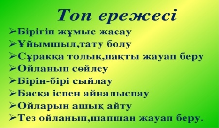 Сабақтың басы 3 минут Үй тапсырмасын тексеру: 5 минут Топқа бөлу: 4минут Ұйымдастыру сәті 4 минут |