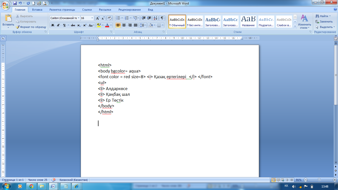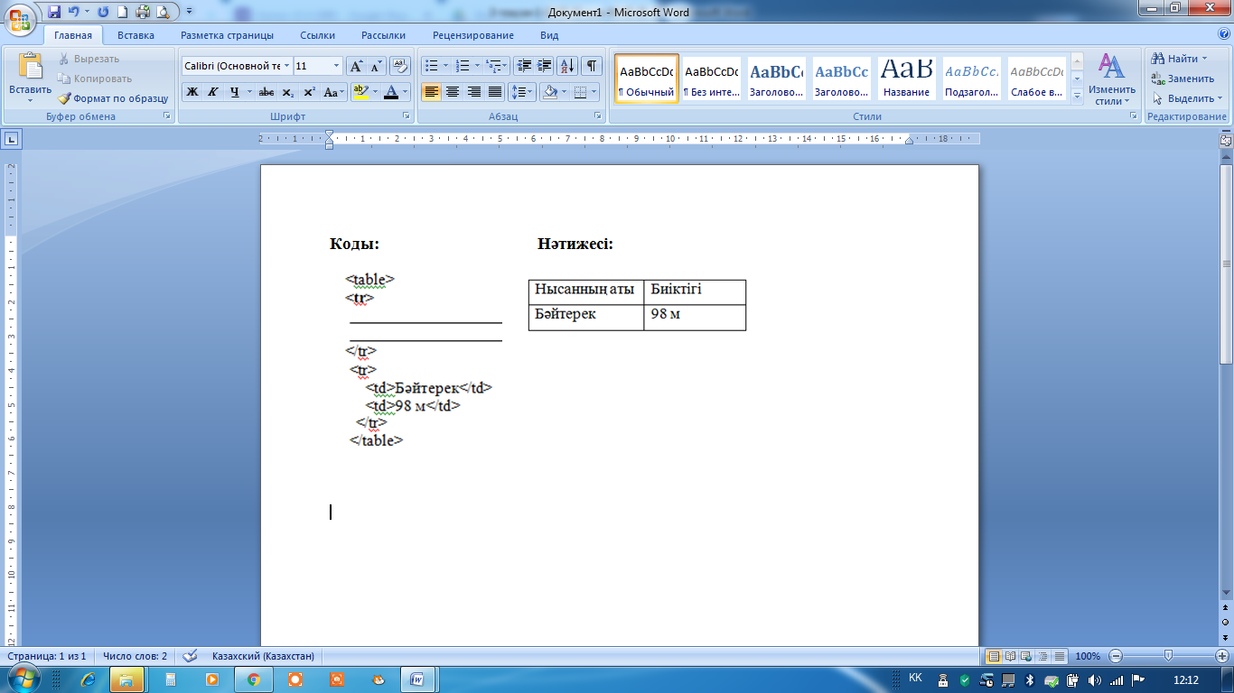 1.1. А) Html тегтерін қолданып, мына жолдарды Web-бетке орналастыру кодын жазыңдар.