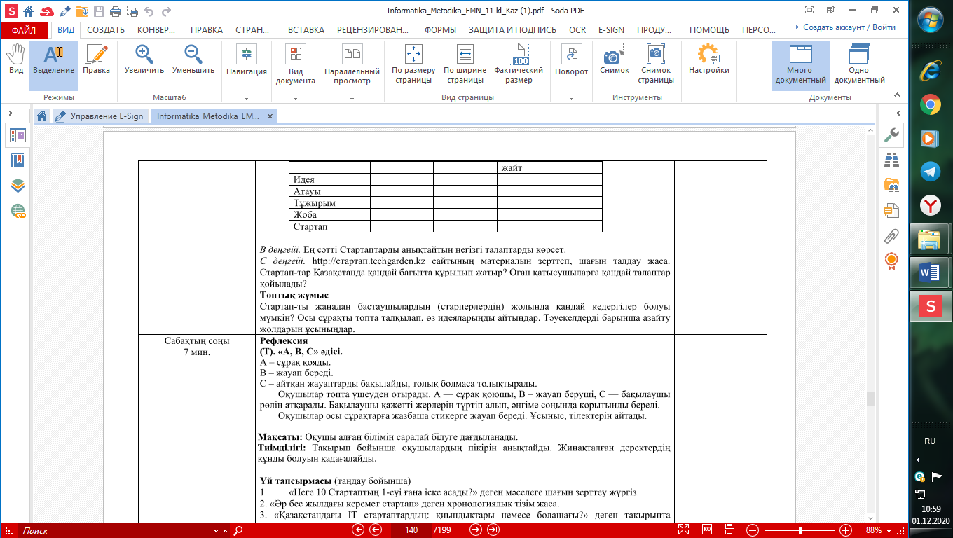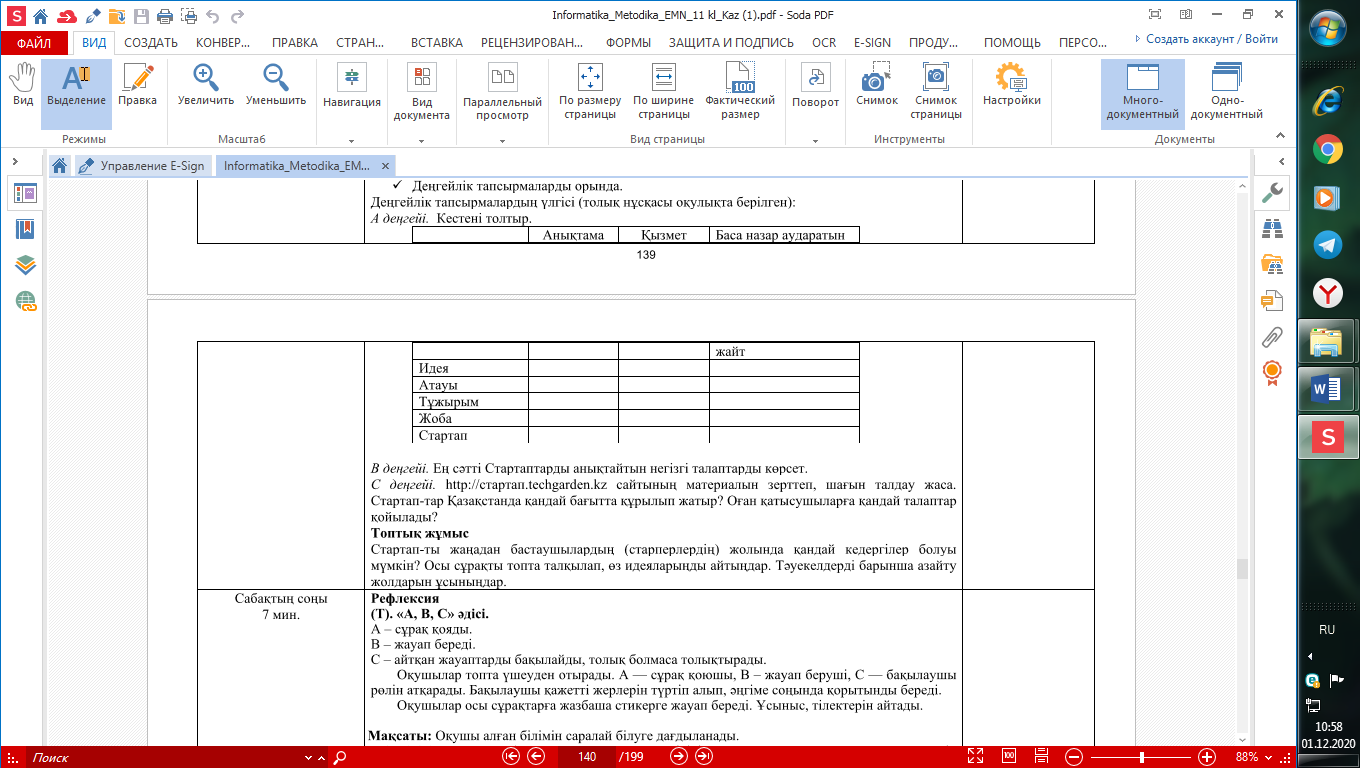 анықтайтын негізгі талаптарды көрсет. С деңгейі. http://стартап.techgarden.kz