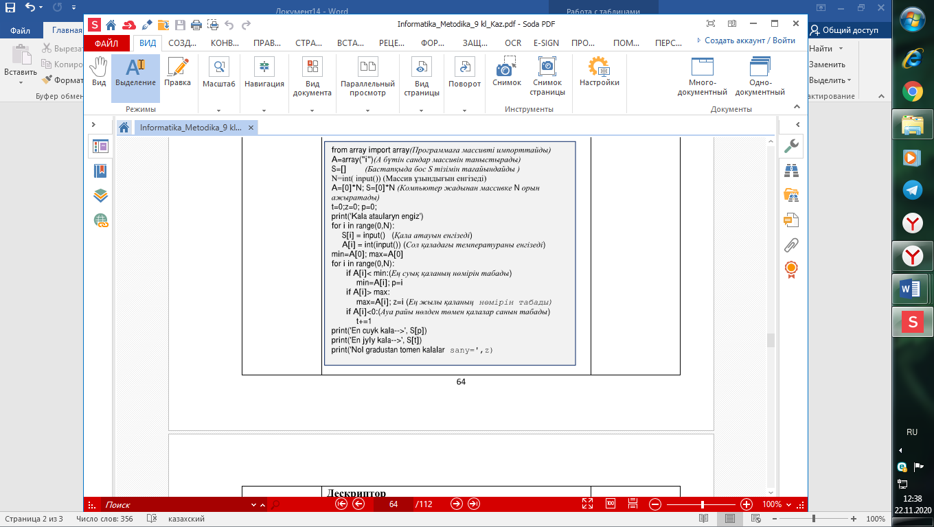 ұсынылған жоба кодтарына талдау жасаңдар. Дескриптор Массив элементтерін