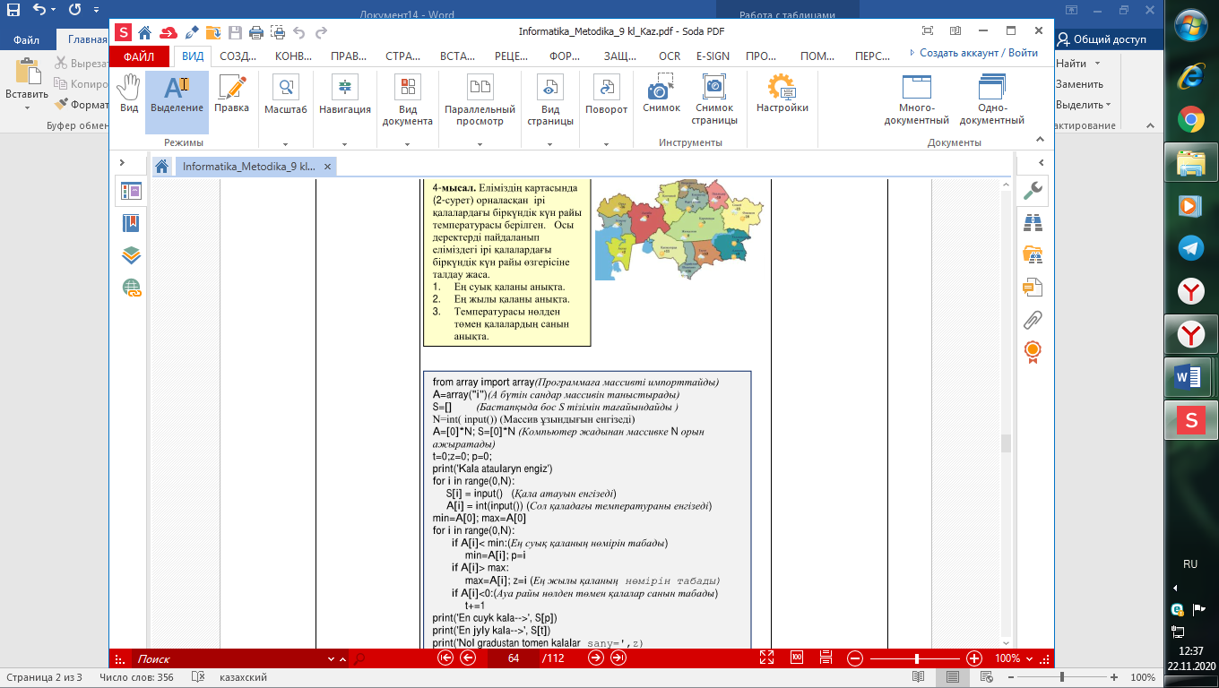 9.3.3.1- бірөлшемді массивтер пайдаланып Python программалау тілінде программаларды жасау |