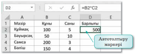 8.2.2.3-электрондық кестелерді қолдану арқылы есептерді шешу үшін кіріктірілген функцияларды пайдалану.