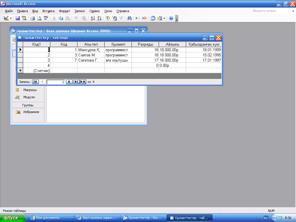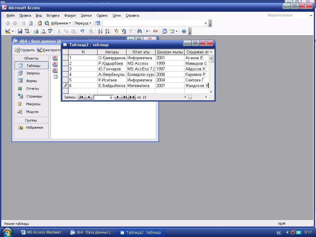 MS Access тарауы бойынша