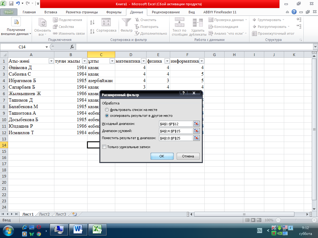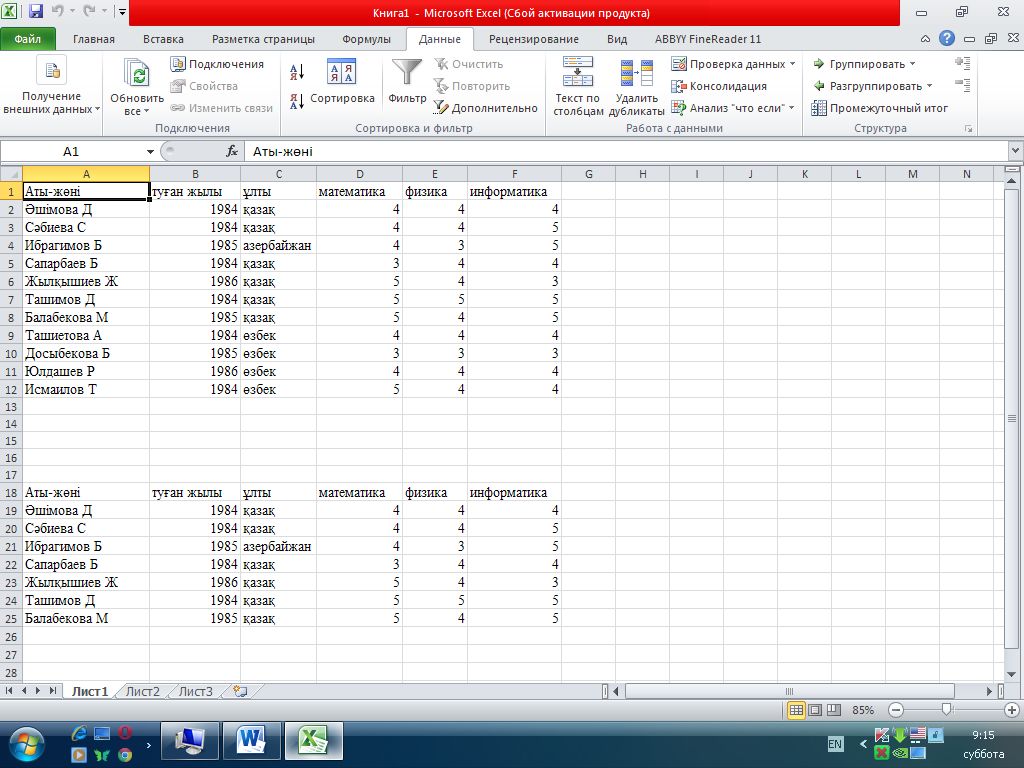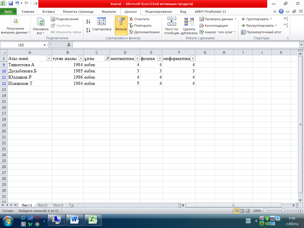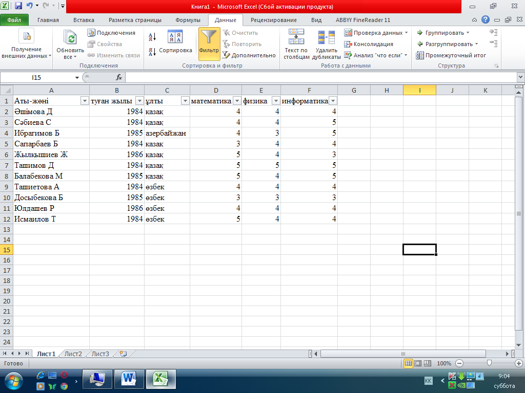 15. MS Excel. Сұрыпталатын деректері бар ұяшықтар жиыны дегеніміз