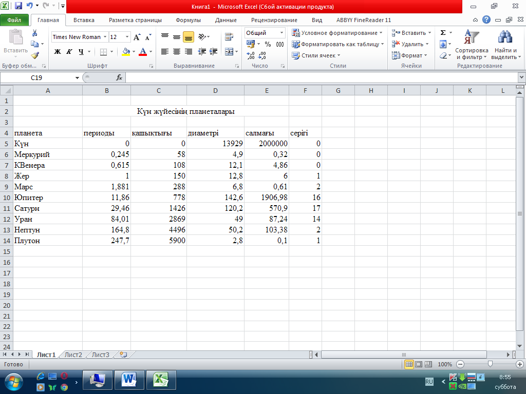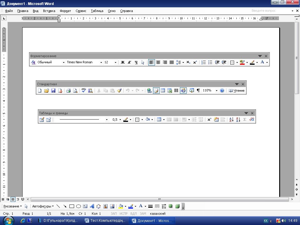 3.2. Саймандар және форматтау панелдерін, сызғыш, қалып-күй қатарын терезеге орналастыру, алып тастау және керісінше орындау.