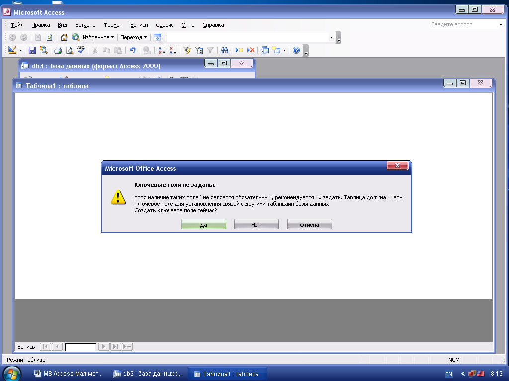 MS Access деректер қоймасының объектісіне жатпайтын объект