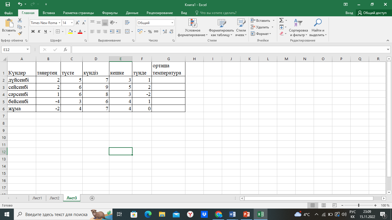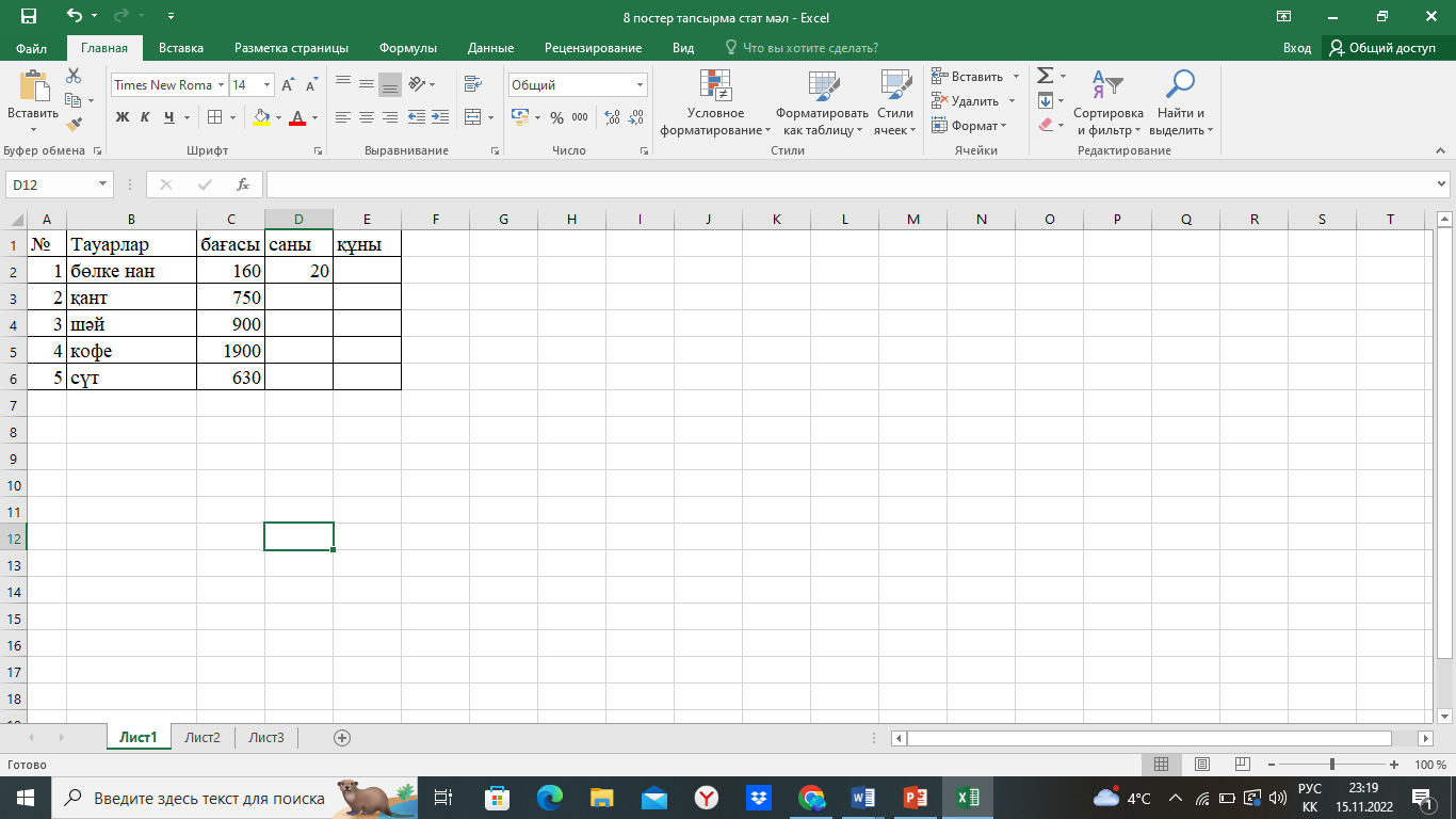 Оқу мақсаты: 8.2.2.3 - электронды кестені қолдана отырып есептерді шешуде кіріктірілген функцияларды қолдану. Оқушыларға болашақта мамандық иесі ретінде кездесуі мүмкін жағдаяттарға байланысты есептер берілді. Топтық талқылау болды.