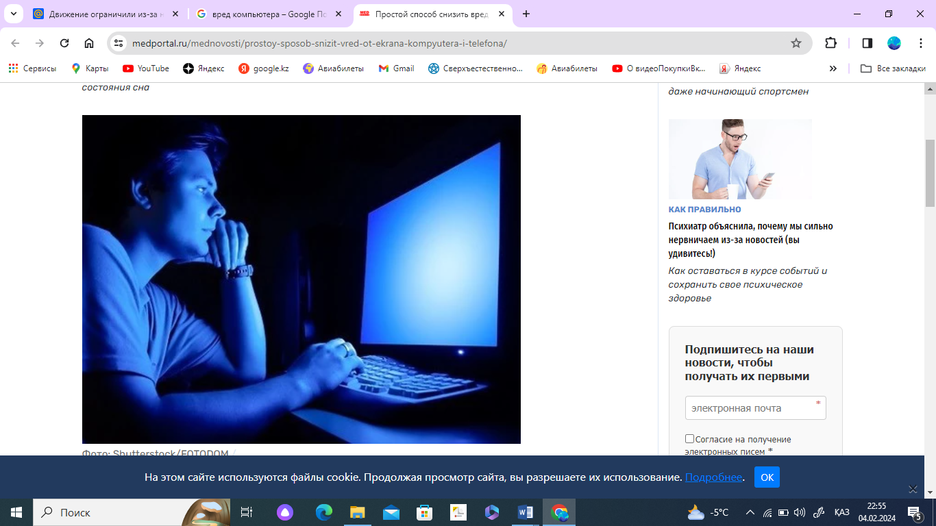 Тақырыбы: Компьютер пайдаланудың кері аспектілері.