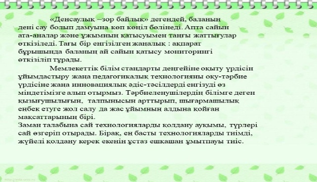 –зор байлық» дегендей, баланың дені сау болып дамуына көп көңіл