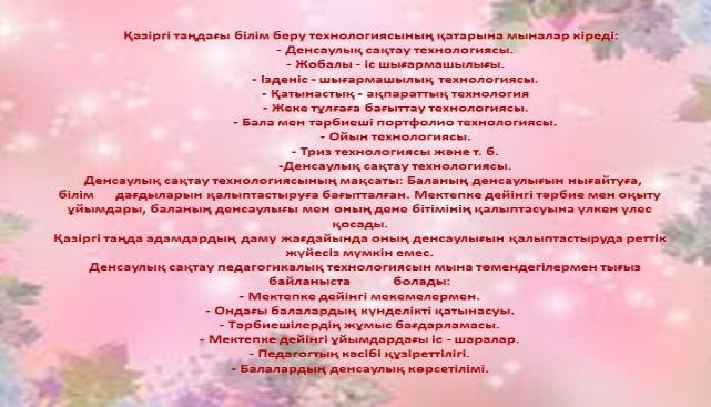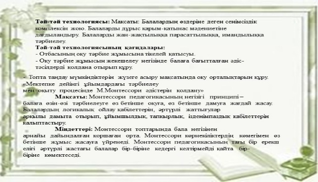 Мектепке дейінгі ұйымдарда қарастырылған әрбір технологияның