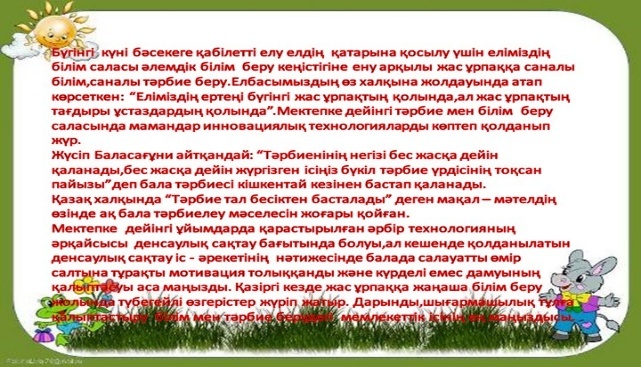 қалыптасуы аса маңызды. Қазіргі кезде жас ұрпаққа жаңаша білім беру